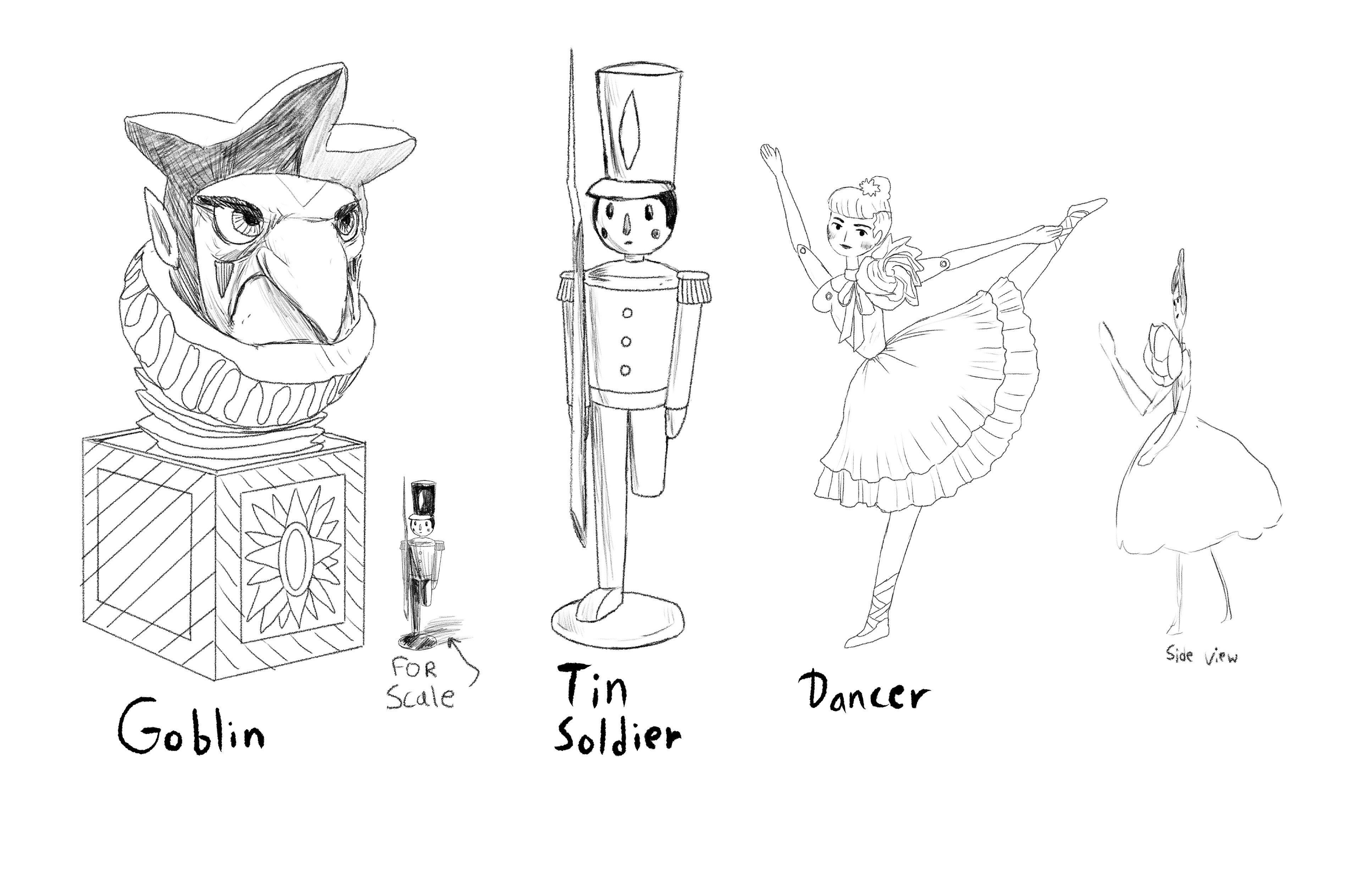 My company worked with a composer to create illustrations to accompany his classical adaptation of Andersen's "Steadfast Tin Soldier." I exercised my skills of research, character design, and exploration to complete this project.